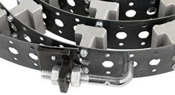 Бандаж длиной 3,2 метра предназначен для позиционирования сварочной каретки на трубах большого диаметра. Стальная направляющая надежно удерживает машину и позволяет избежать отклонения горелки в сторону от линии сварки.