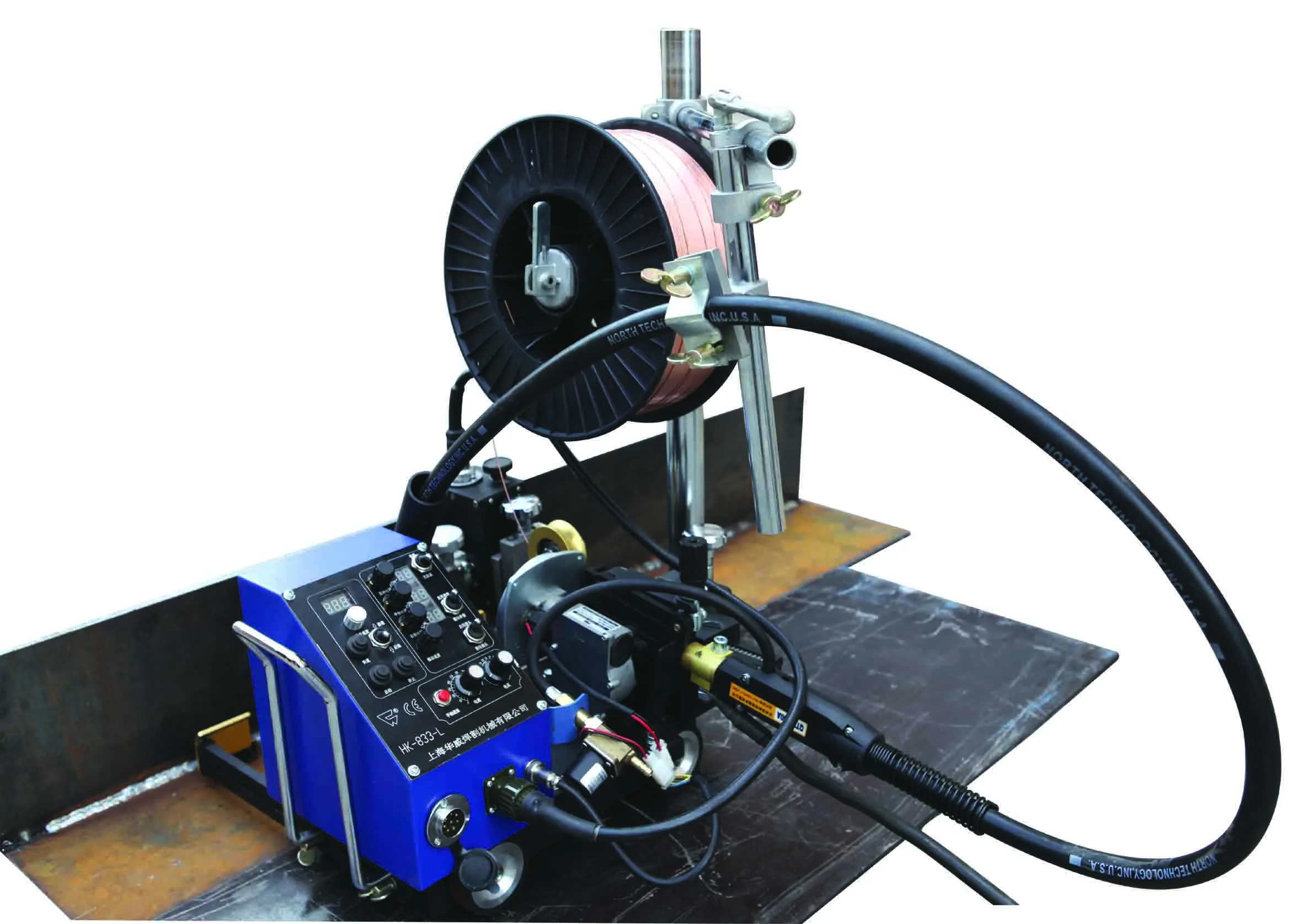 Сварочная каретка Huawei HK-8SS-L предназначена для механизации полуавтоматической сварки в среде защитного газа (MIG/MAG) угловых соединений металлоконструкций большой протяженности, порошковой проволокой и проволокой сплошного сечения диаметром до 2,4 мм.