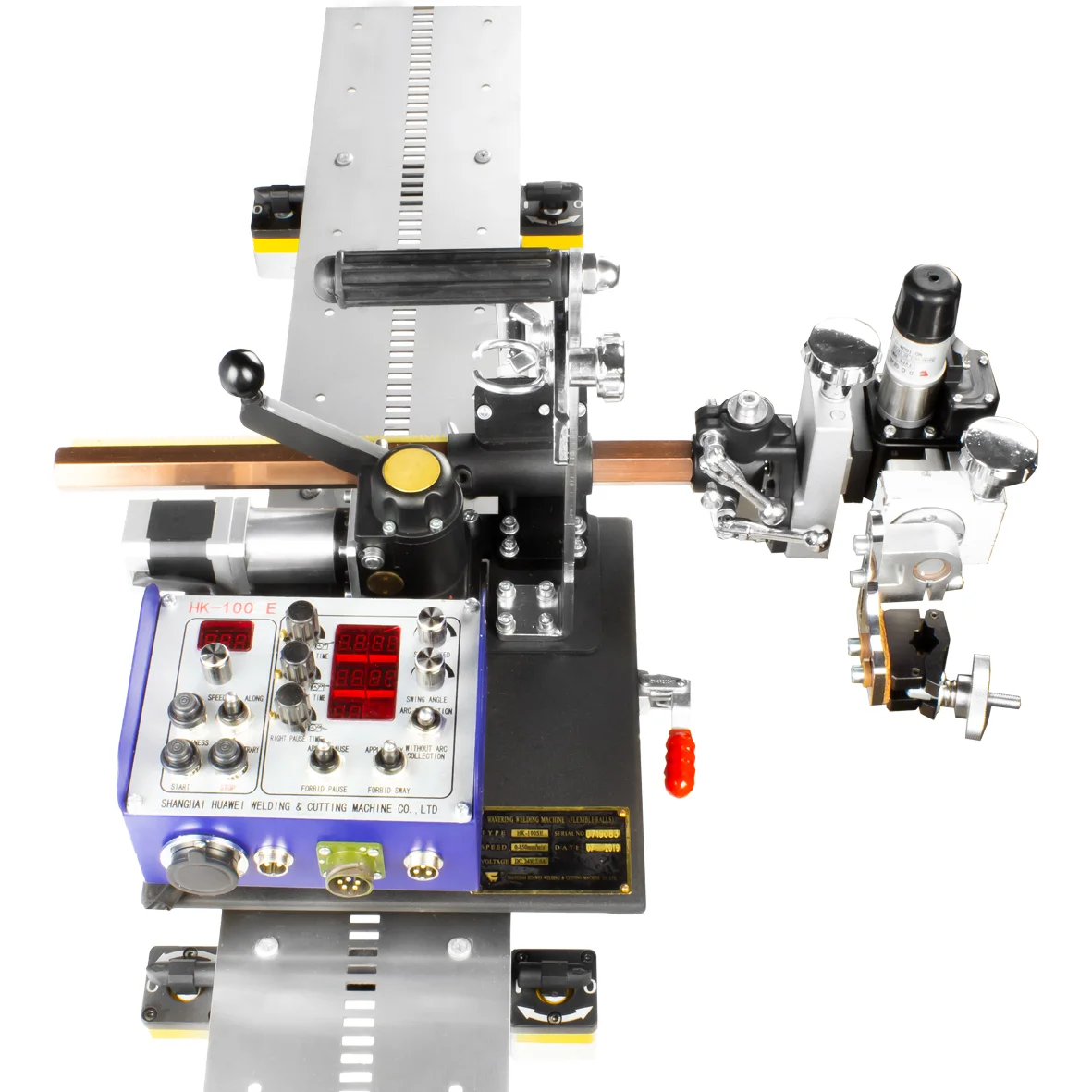 Сварочная каретка HK-100S применяется для сварки горизонтальных швов на вертикальной плоскости, вертикальных и кольцевых неповоротных стыков трубопроводов диаметром 750 мм, подходит для сварки листов обшивки корабельных корпусов, монтаже сосудов и емкостей в химической, пищевой, цементной промышленности. Сварка происходит с помощью горелки сварочного полуавтомата, которая закрепляется в кронштейне каретки. При необходимости, колебания горелки в поперечной плоскости осуществляются с помощью осциллятора.
